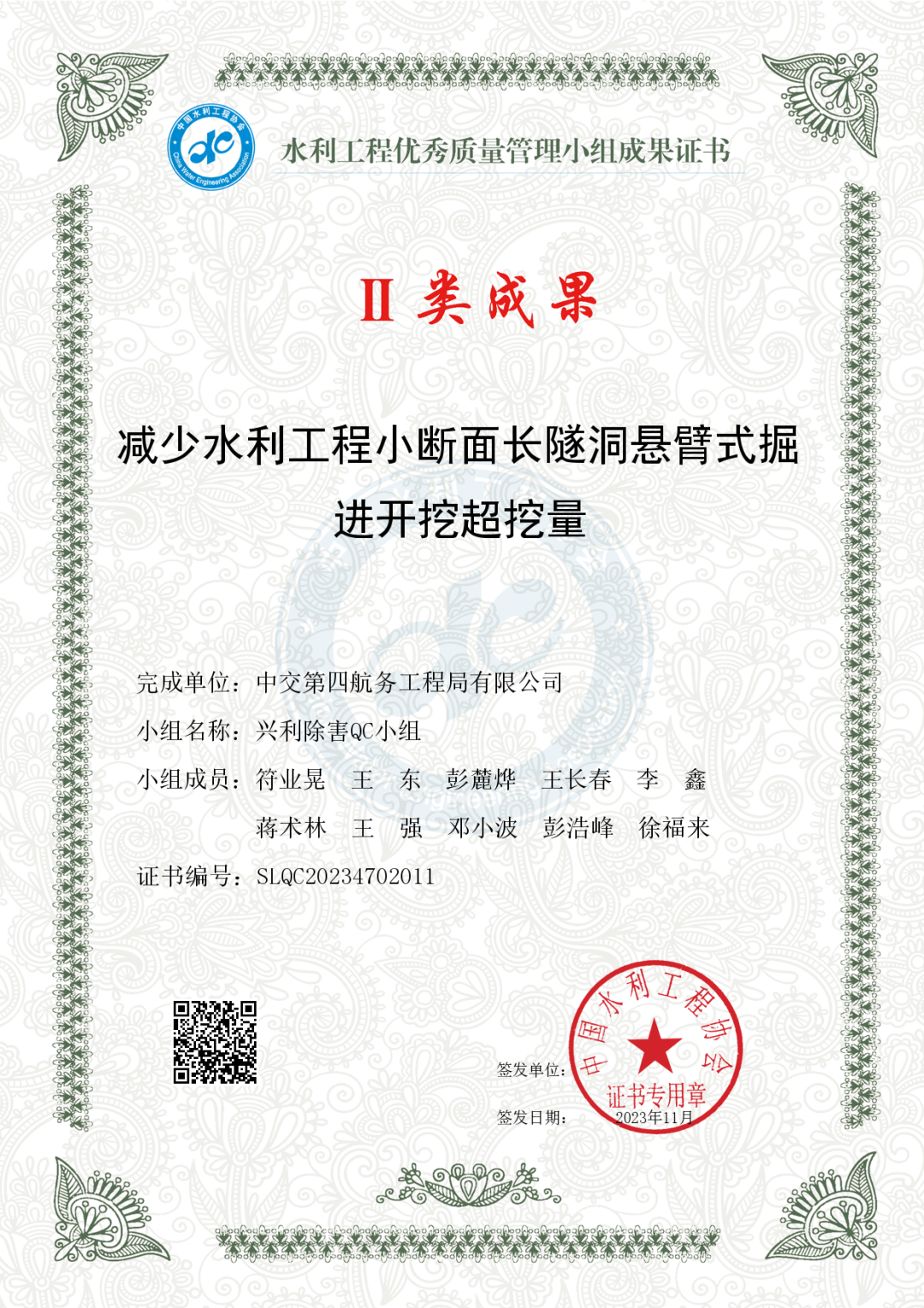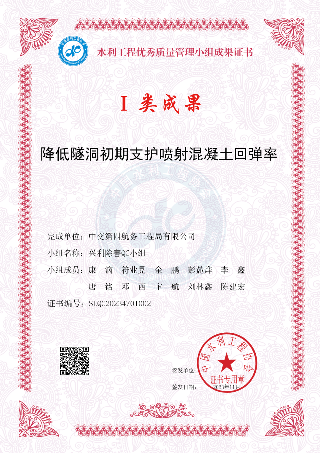 鼓勵參建單位自籌資金,發(fā)明實(shí)用新型專利、工法,切實(shí)提升工程質(zhì)量。以高地應(yīng)力薄層狀粉砂質(zhì)泥巖圓形引水隧洞施工關(guān)鍵技術(shù)研究及應(yīng)用、高大渡槽及連續(xù)剛構(gòu)渡槽預(yù)應(yīng)力混凝土強(qiáng)度質(zhì)量在線監(jiān)測與施工安全智能管控系統(tǒng)研發(fā)等為突破口,現(xiàn)已榮獲4項(xiàng)Ⅰ類成果,1項(xiàng)II類成果。