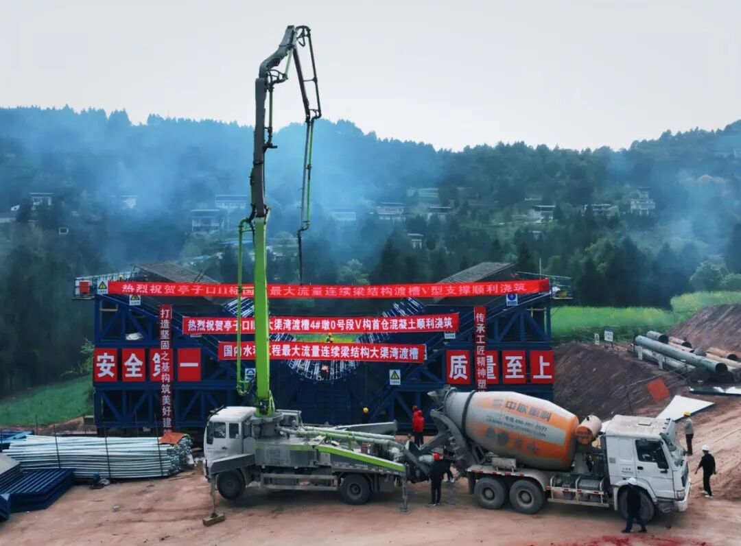 近日,隨著最后一車混凝土完成入模振搗,亭子口灌區(qū)一期工程控制性工程——大渠灣渡槽0號段首倉混凝土澆筑圓滿收官,標志著國內在建水利工程最大流量連續(xù)梁結構渡槽正式進入主體結構施工新階段,為后續(xù)懸臂澆筑施工奠定堅實基礎,該渡槽預計2026年完工。