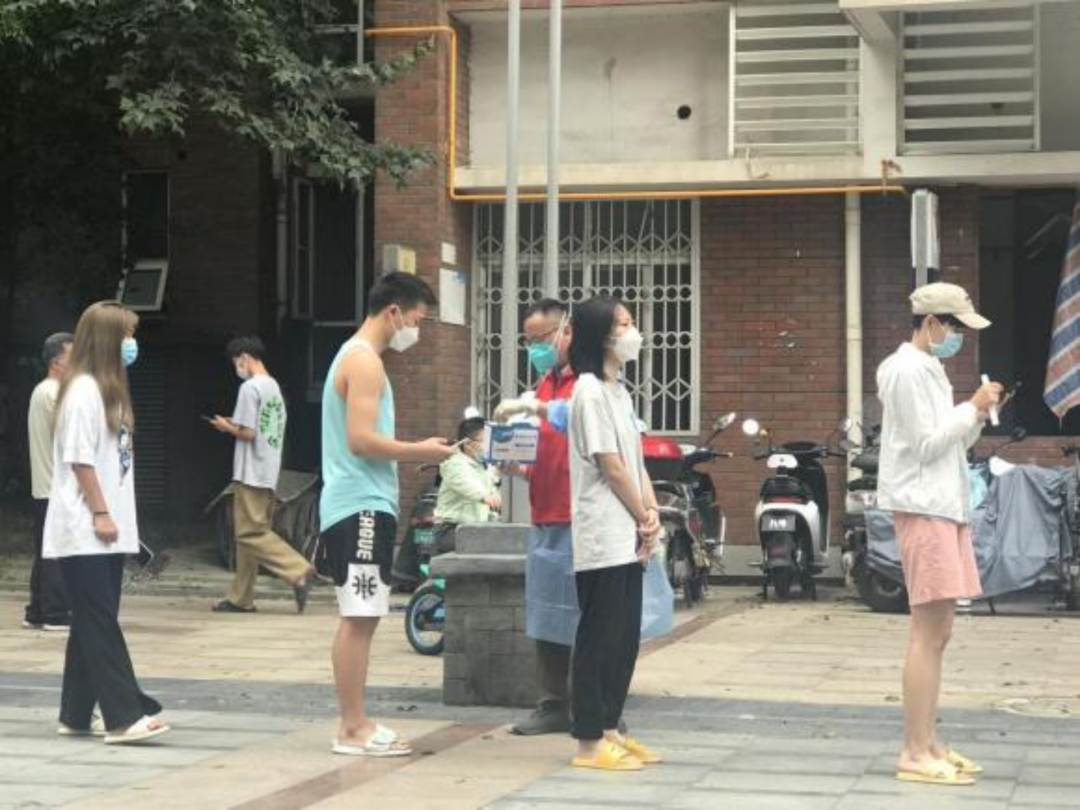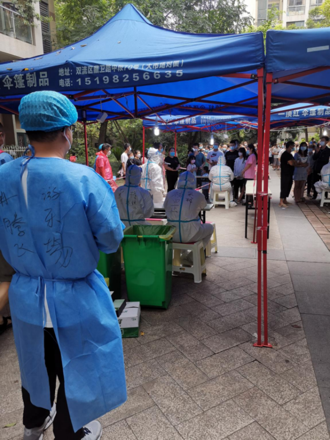 亭子口灌區(qū)公司李明參加南充市嘉陵區(qū)南湖街道抗擊新冠疫情黨員突擊隊行動,在南山府邸小區(qū)維護(hù)居民核酸檢測秩序。