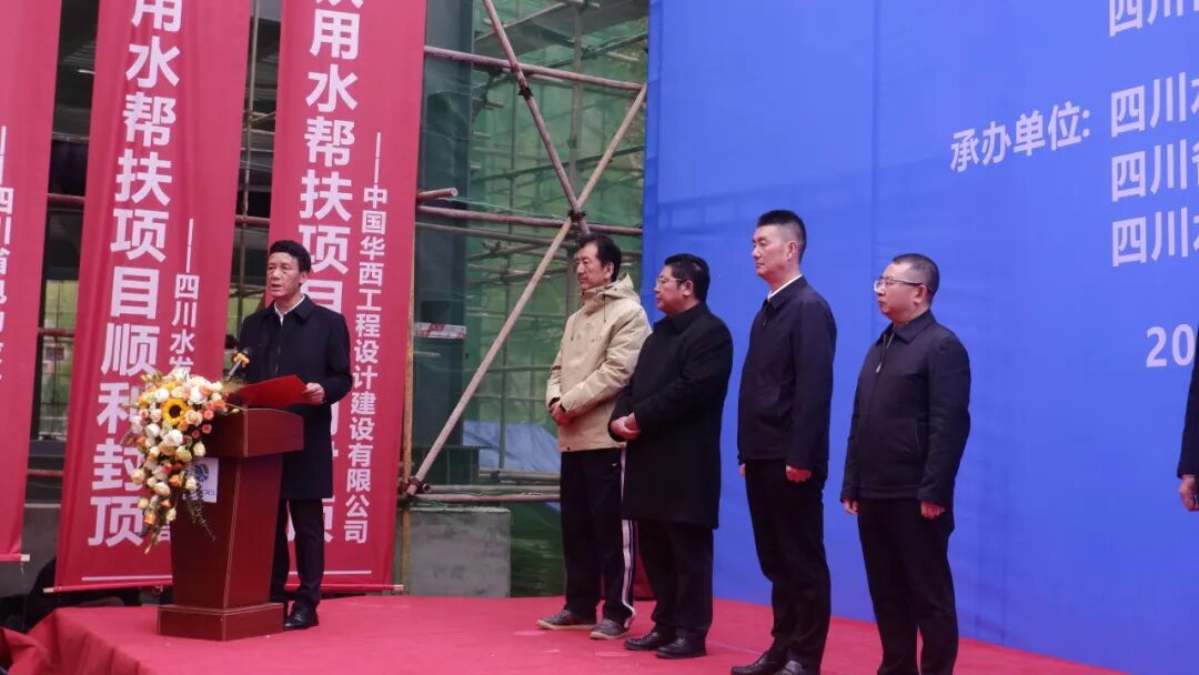 集團(tuán)黨委委員、董事、建設(shè)公司黨委書記、董事長(zhǎng)袁斌參加封頂儀式并作為項(xiàng)目EPC牽頭單位發(fā)言。集團(tuán)副總經(jīng)理鄭祖杰,水發(fā)設(shè)計(jì)公司、建設(shè)公司、投資公司負(fù)責(zé)同志,集團(tuán)托底性幫扶工作專班辦公室負(fù)責(zé)同志參加封頂儀式。德格縣委常委、常務(wù)副縣長(zhǎng)洛絨丹巴及德格縣縣級(jí)部門、德格縣國(guó)資公司、項(xiàng)目建設(shè)單位、總承包單位代表參加封頂儀式。