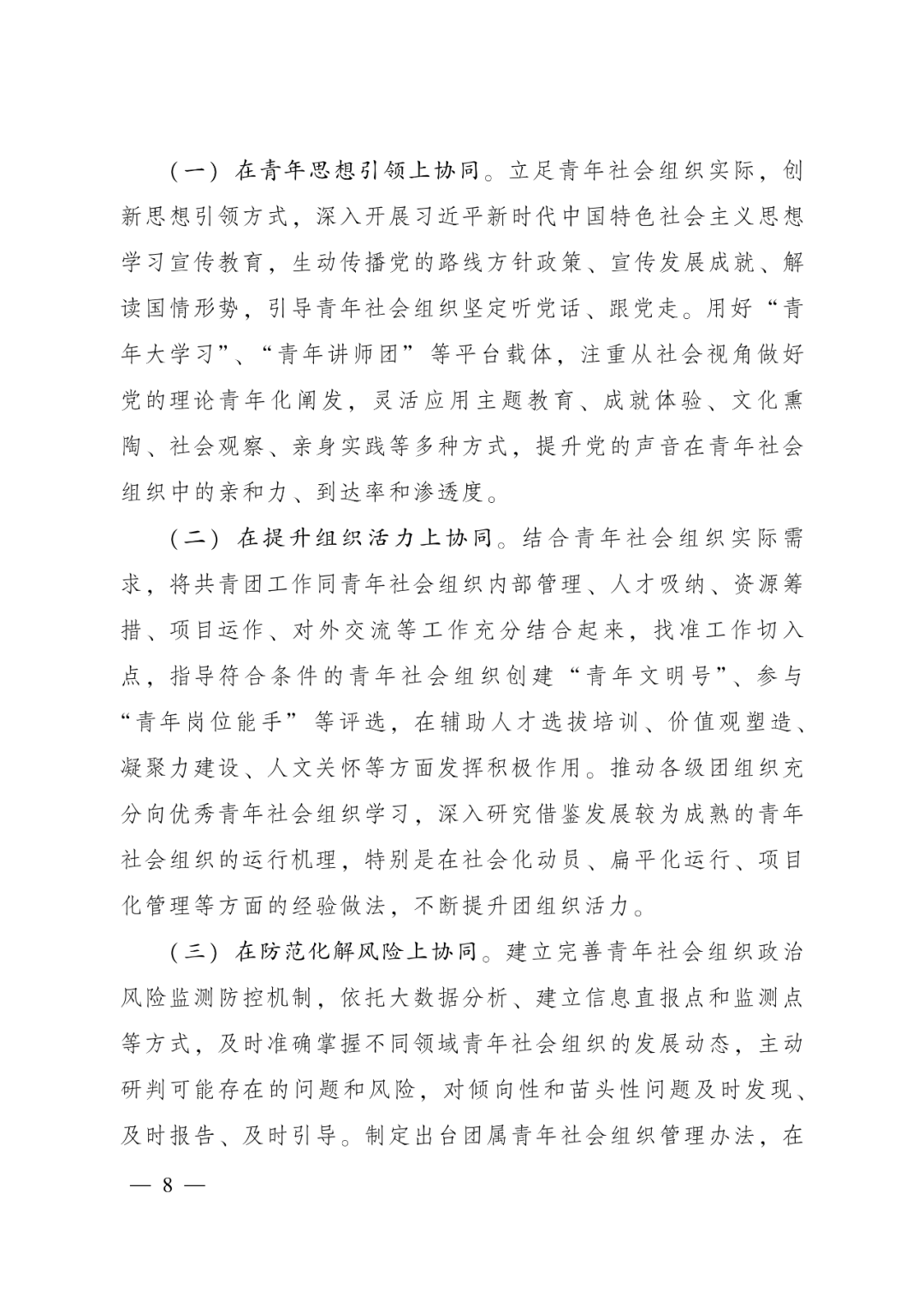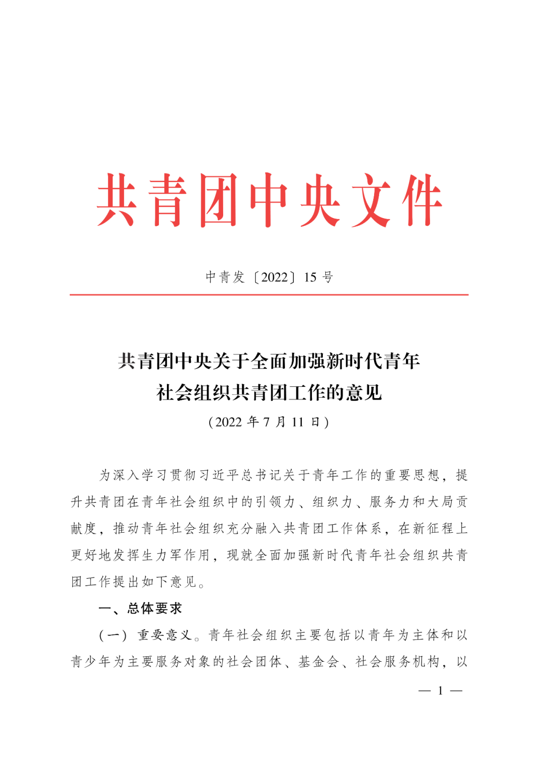 近日,共青團中央印發(fā)《關(guān)于全面加強新時代青年社會組織共青團工作的意見》(以下簡稱《意見》),對全團深入學習貫徹習近平總書記關(guān)于青年工作的重要思想,提升共青團在青年社會組織中的引領(lǐng)力、組織力、服務(wù)力和大局貢獻度,推動青年社會組織充分融入共青團工作體系,在新征程上更好地發(fā)揮生力軍作用作出全面部署。